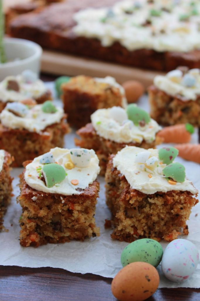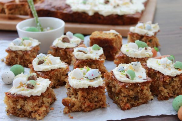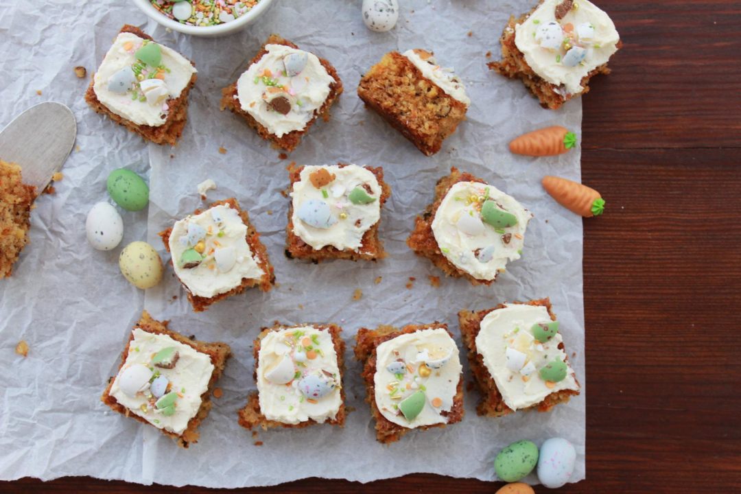 Das leckerste Gemüseversteck in Kuchenform! Kuchen mit Karotten gehören nicht nur in meiner Familie zu den absoluten Oster-Klassikern. Ich backe seit Jahren diesen extrem saftigen Karottenkuchen mal in der Springform, mal auf dem Blech, denn die geraspelten Möhrchen machen den Kuchenteig einfach sensationell saftig.