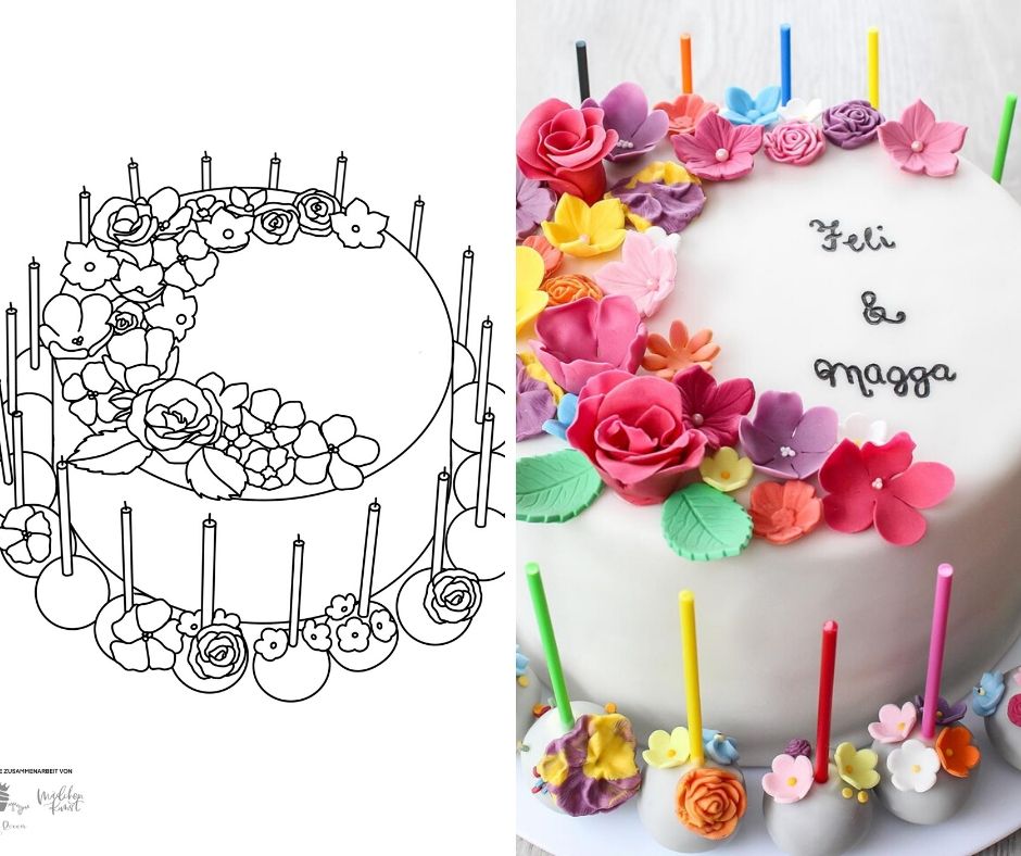Die großartigen Ausmalbilder sind alle nach Vorlage meiner bereits entstandenen Torten & Cupcakes von der tollen Künstlerin Christin nachempfunden worden. Auf Ihrer Seite www.maedchenkunst.de könnt Ihr Euch durch FLORALES WATERCOLOR & MODERNES LETTERING stöbern und Taucht in die Welt des Brushlettering und der Aquarellmalerei bei Christin ein. Auch auf Ihrem Youtube Channel findet man allerhand Tutorials zum Thema Watercolor, Lettering & Design.